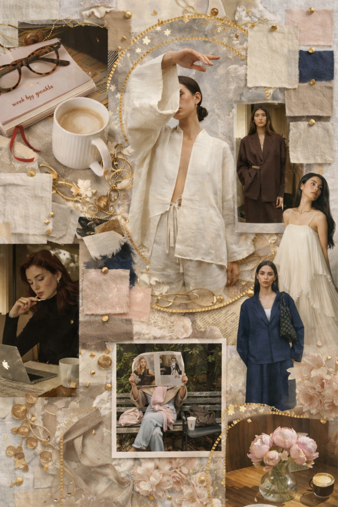 The relaxed silhouettes, natural textiles, and color palette inspired by earthy and natural tones reinforce this narrative of calm, introspection, and emotional connection. The collection thus proposes a form of emotional luxury, where fashion becomes a means to inhabit memory, stimulate the senses, and build a deeper relationship between the body and the garment.