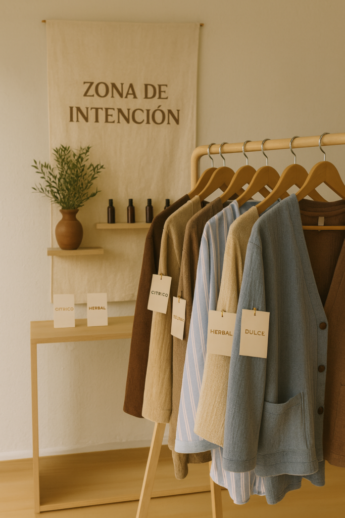 Smell, one of the senses most directly connected to the amygdala and hippocampus—brain centers associated with emotion and memory—becomes the narrative axis of the project. Each garment incorporates fragrances microencapsulated in its fibers, allowing the aroma to be released gradually with movement and contact with the body.